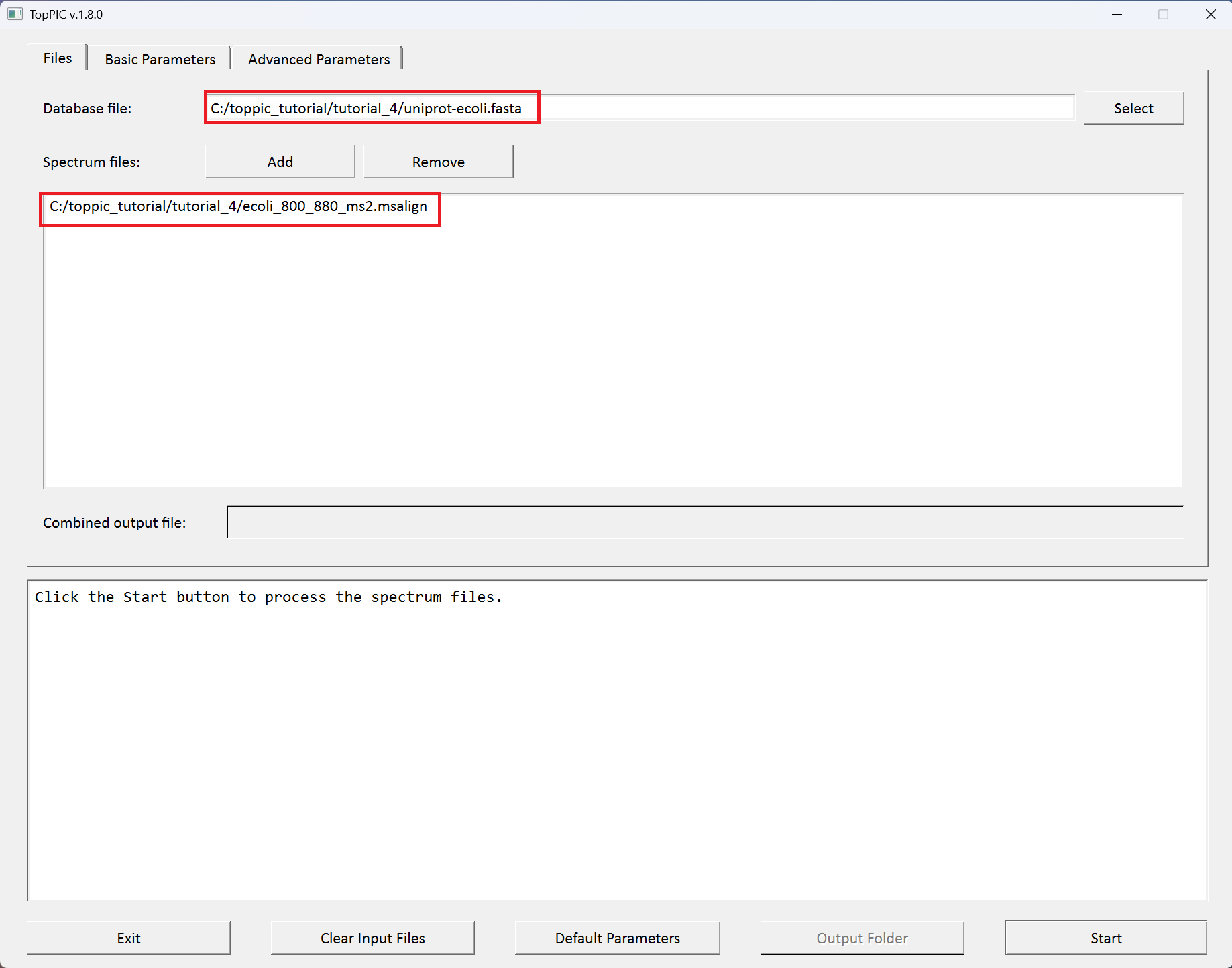 and C:\toppic_tutorial\tutorial_3\ecoli_2_ms2.msalign as
