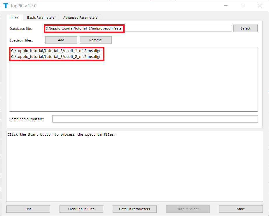and C:\toppic_tutorial\tutorial_3\ecoli_2_ms2.msalign as
